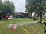 Die Hausbesitzer hatten das Feuer bemerkt und die Feuerwehr alarmiert. Ein Atemschutztrupp unserer Feuerwehr konnte den Brand rasch unter Kontrolle bringen. Zwei Gasflaschen mussten ins Freie gebracht und gekühlt werden, anschließend wurde der Raum belüftet. Über der Decke des Brandraumes wurde der Holzboden geöffnet und mit der Wärmebildkamera kontrolliert. Die FF Obernstraß stellte die Atemschutz-Reserve, während die Wasserversorgung vom nahegelegenen Teich durch die FF Obernstraß und die FF Klam sichergestellt wurde. Auch Polizei und Rettung waren im Einsatz. Insgesamt standen rund 50 Feuerwehrmitglieder im Einsatz.
