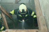 Beim Eintreffen beim „Rammelbauer“, wo sich die Trocknungsanlage befindet, informierte uns Übungsleiter Heinrich Fröschl jun., dass sich im Keller ein Brandherd befinde und vermutlich eine Person vermisst werde.