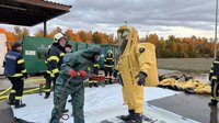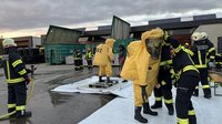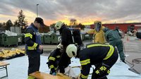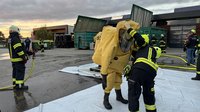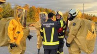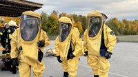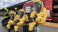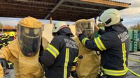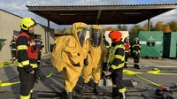 Besonderes Augenmerk lag auf dem korrekten An- und Ausziehen der Schutzanzüge sowie der ordnungsgemäßen Dekontamination nach dem Einsatz. Insgesamt nahmen rund 80 Feuerwehrmitglieder mit acht Fahrzeugen an der Übung teil. Zur Unterstützung des Einsatzleiters war die Einsatzführungsunterstützung mit allen drei Fahrzeugen vor Ort.
