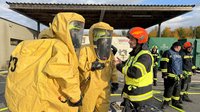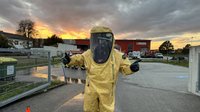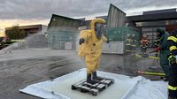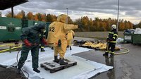 Die Übung bot den Atemschutzträgern eine einmalige Gelegenheit, das Arbeiten mit einem Schutzanzug der Schutzstufe 3 unter realitätsnahen Bedingungen zu trainieren.