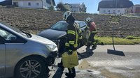 Zwei Pkw stießen unweit des Feuerwehrhauses zusammen, wobei eine Person verletzt und von der Rettung ins Krankenhaus gebracht wurde. Unsere Aufgabe war es, ausgelaufene Flüssigkeiten zu binden und die Fahrbahn zu reinigen. Die beiden beschädigten Fahrzeuge wurden für den Abtransport durch einen Abschleppdienst bereitgestellt.