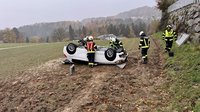 Bereits auf der Anfahrt kam der Funkspruch, dass keine Personen mehr im Fahrzeug eingeklemmt waren. Gemeinsam mit der Feuerwehr St. Thomas wurde das Fahrzeug, welches über eine Mauer gestürzt und am Dach zum Liegen gekommen war, mithilfe der Seilwinde geborgen. Die verletzte Person konnte vom Roten Kreuz versorgt und ins Krankenhaus gebracht werden.